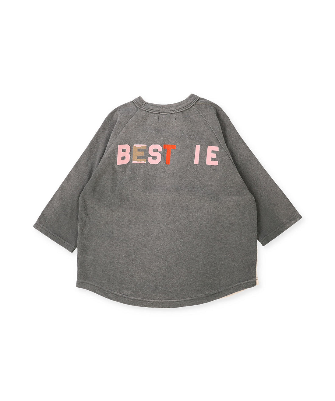 This 3/4-length long-sleeved T-shirt features a child's doodle. The flocked back gives it the feel of a long-sleeved T-shirt that has been loved and worn many times. Material: 100% Cotton